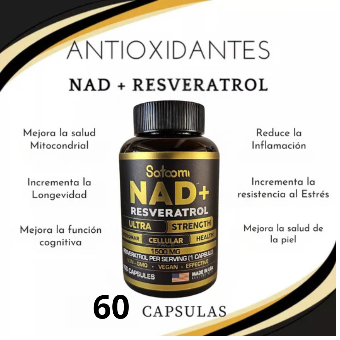 Prueba social Más de 5,000 personas ya disfrutan de los beneficios de NAD+RESVERATROL X60 Cap. "Desde que lo tomo, me siento con más energía y mi piel luce mejor. ¡Totalmente recomendado!" - Carolina M.